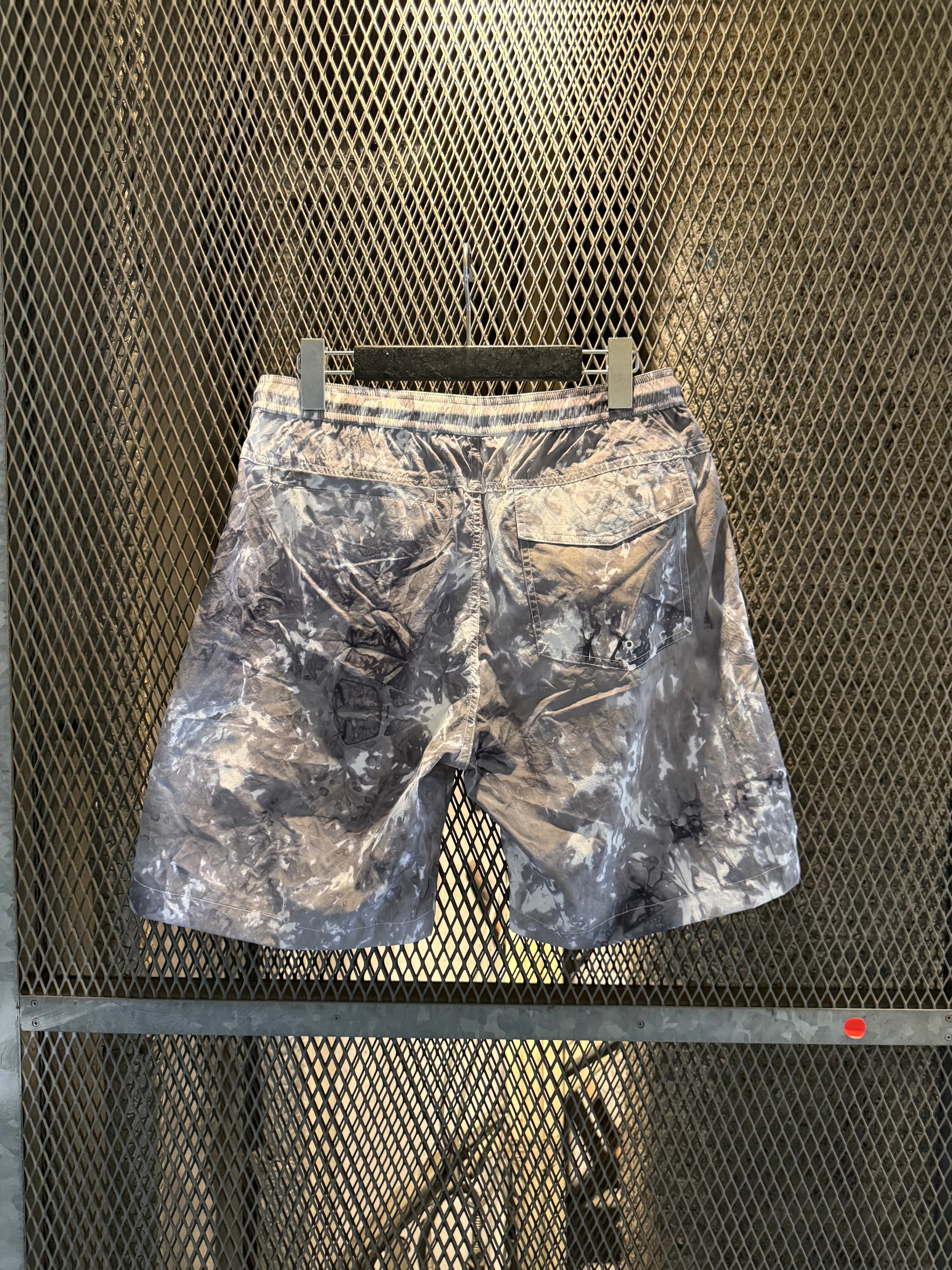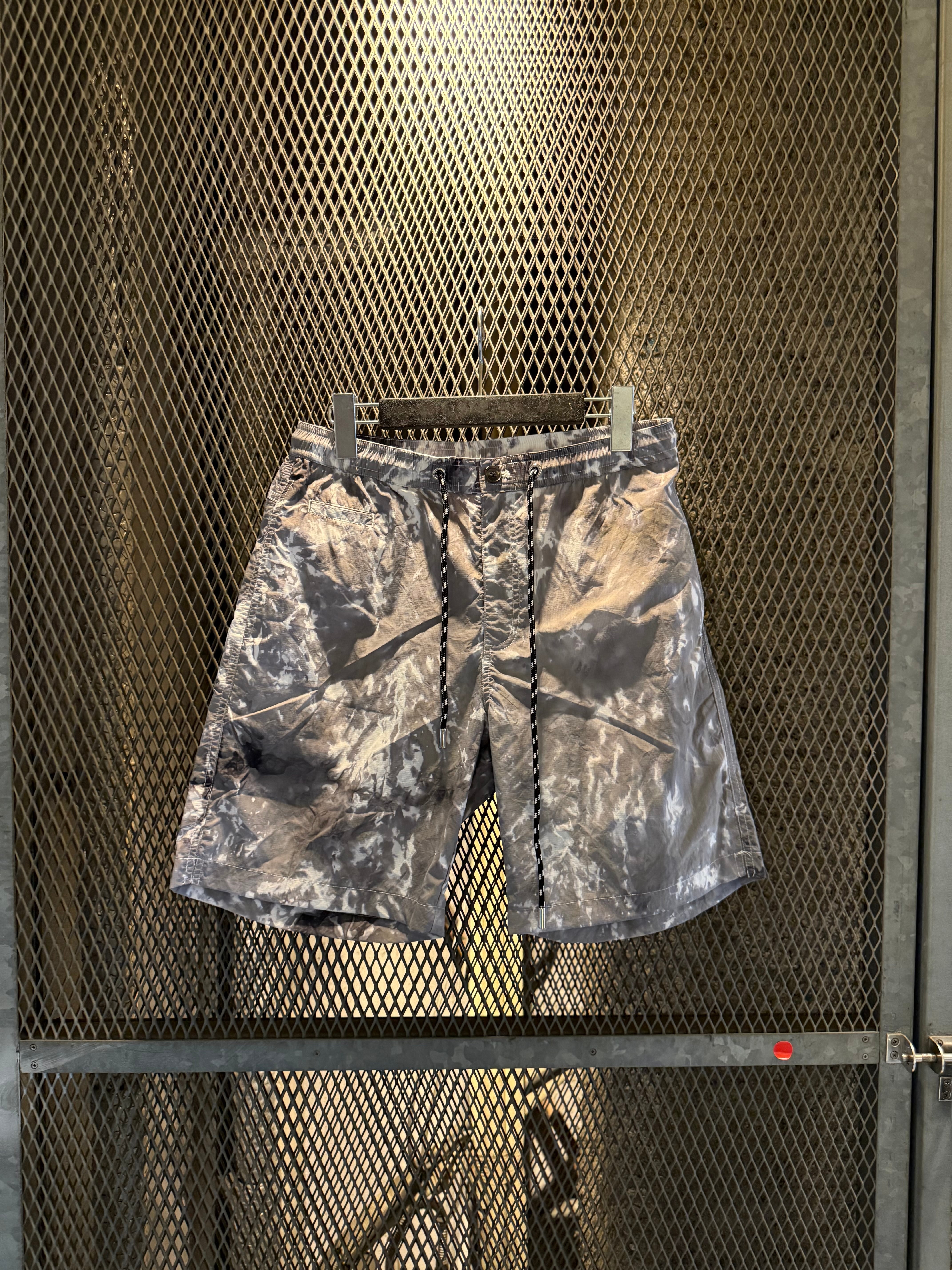 ナイロンリップストップ素材をムラ染めした生地を使用したショートパンツ